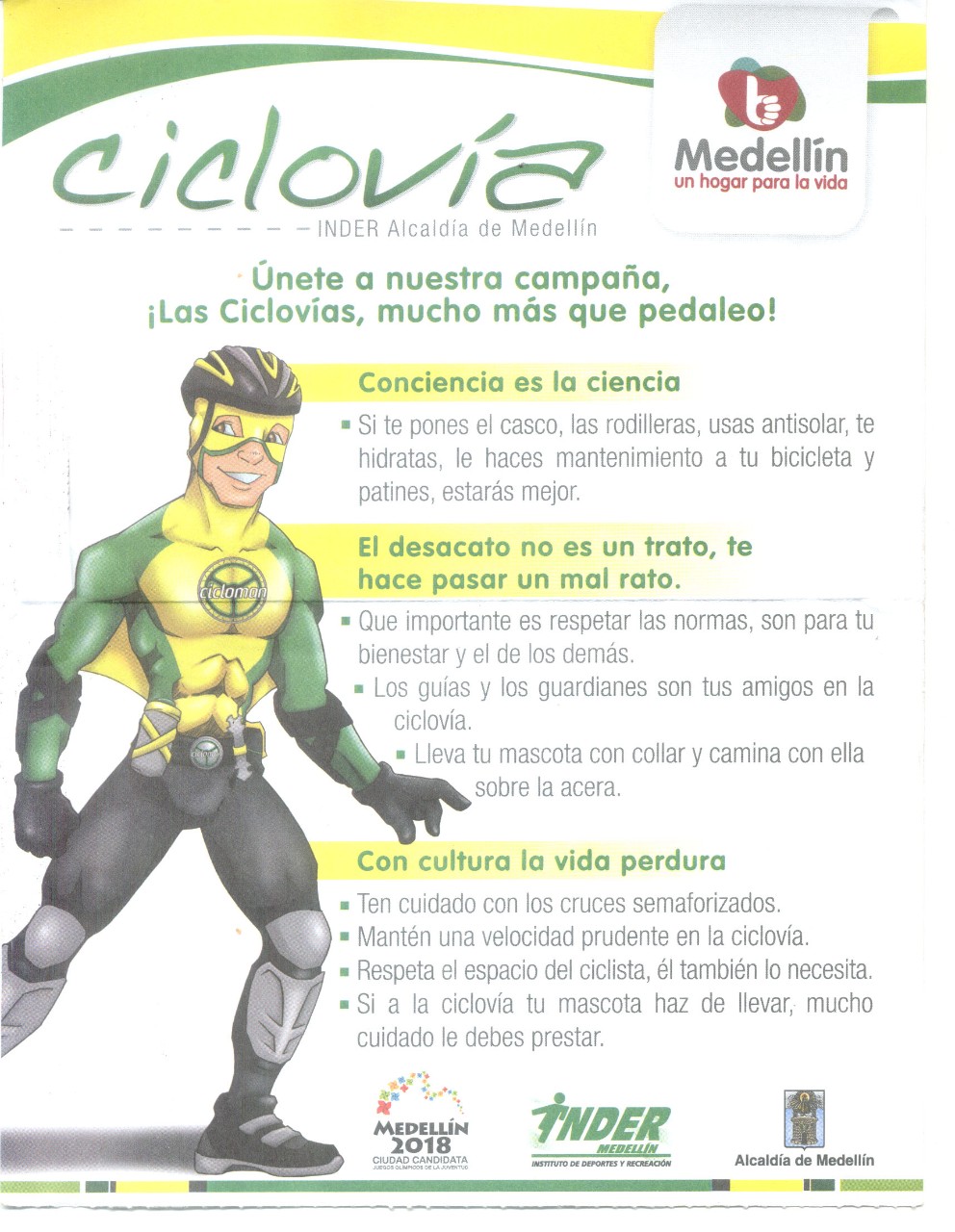 Los invita a participar en los diferentes eventos que se realizan en la ciclovía que cada Domingo se realiza en nuestros barrios, tomando las debidas medidas de seguridad.